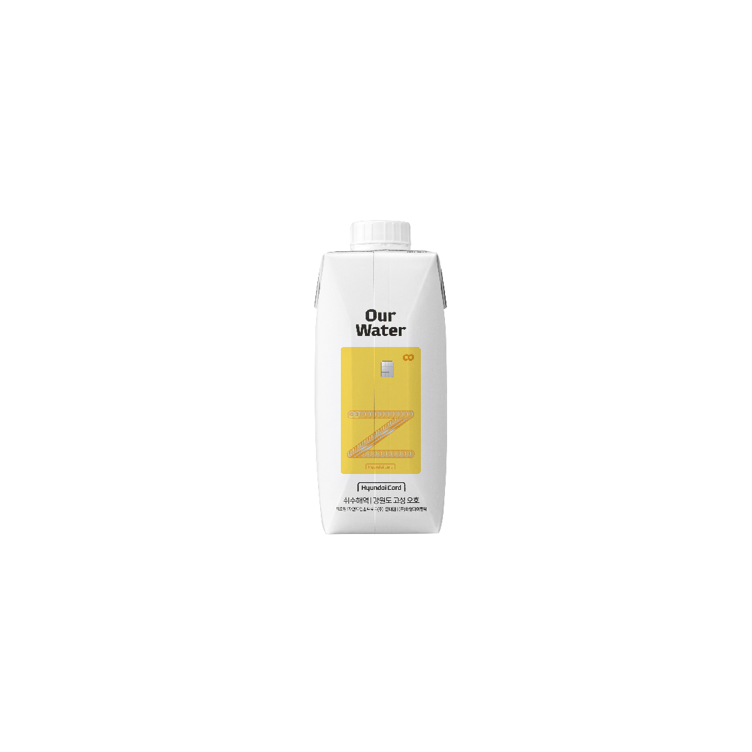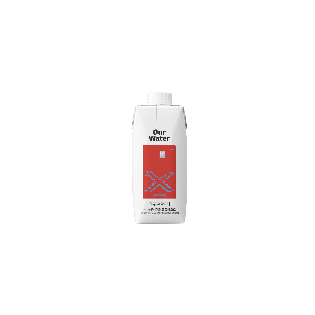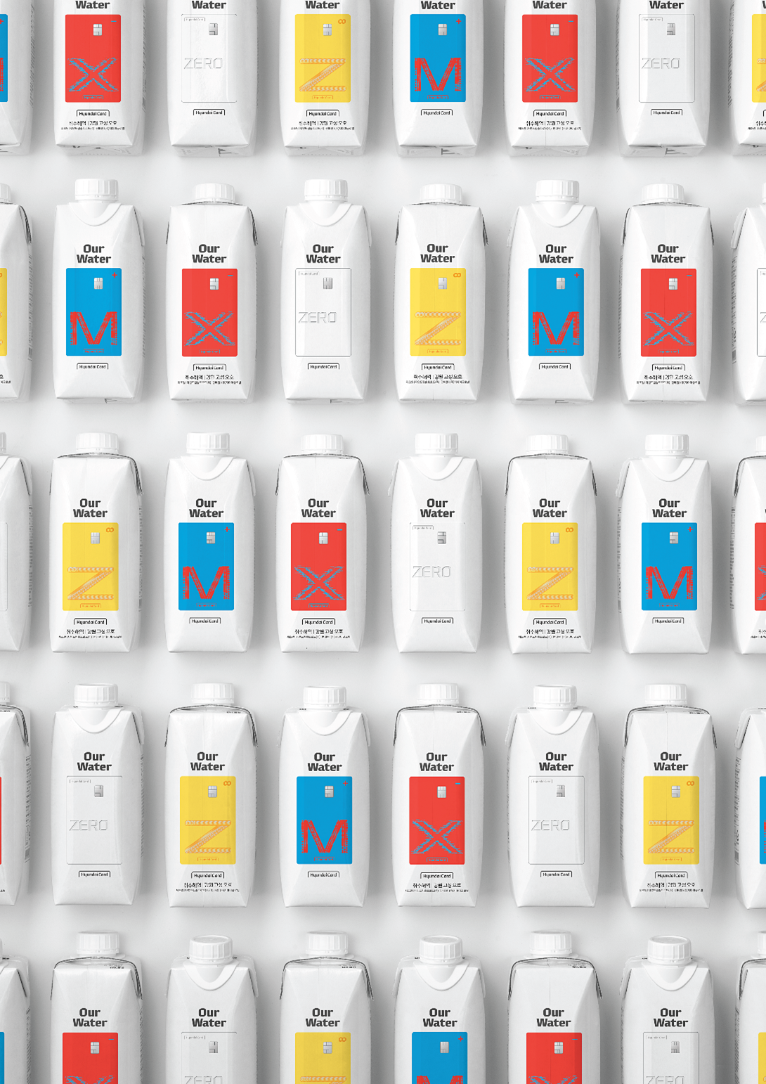 현대카드가 현대카드의 카드 디자인을 담을 종이팩 생수 '아워워터(Our Water) Edition2' 2종을 선보였다. '아워워터 Edition2'는 현대카드를 대표하는 현대카드 M·X·Z·ZERO의 카드 디자인을 패키지 전면과 후면에 있는 그대로 담아냈다.