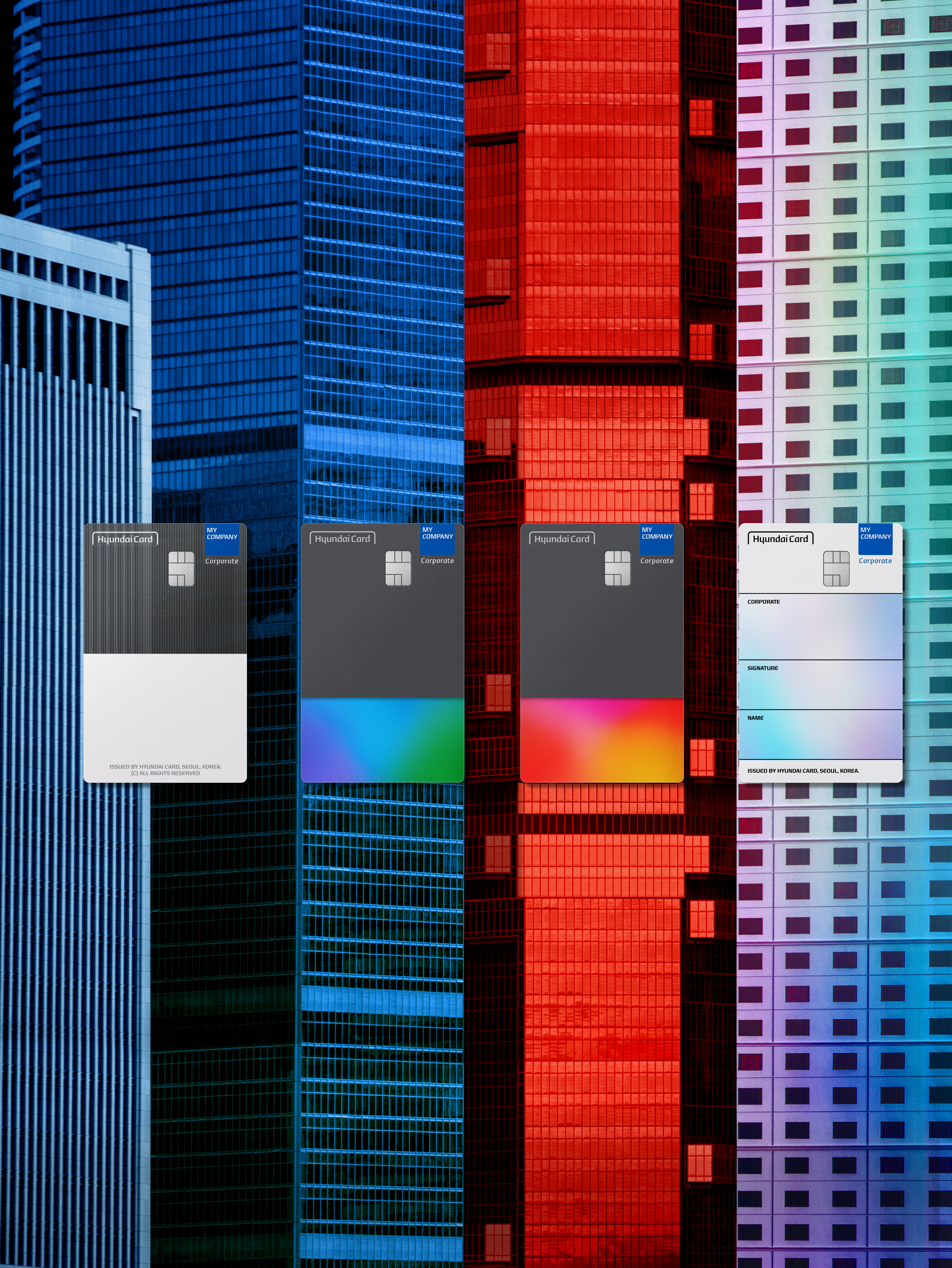 현대카드가 법인 신용카드 상품인 'MY COMPANY'를 내놓았다. 상품의 종류와 혜택은 물론 업계 최초로 플레이트 디자인을 다양화 하는 등 회원의 선택권을 늘려 법인 회원들이 누릴 있는 혜택의 수준을 높였다.
